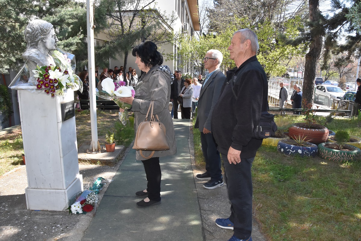 Во рамки на одбележувањето, градоначалникот Владко Грозданов и повеќе делегации положија свежо цвеќе на бистата на Малина Попиванова, во дворот на училиштето.